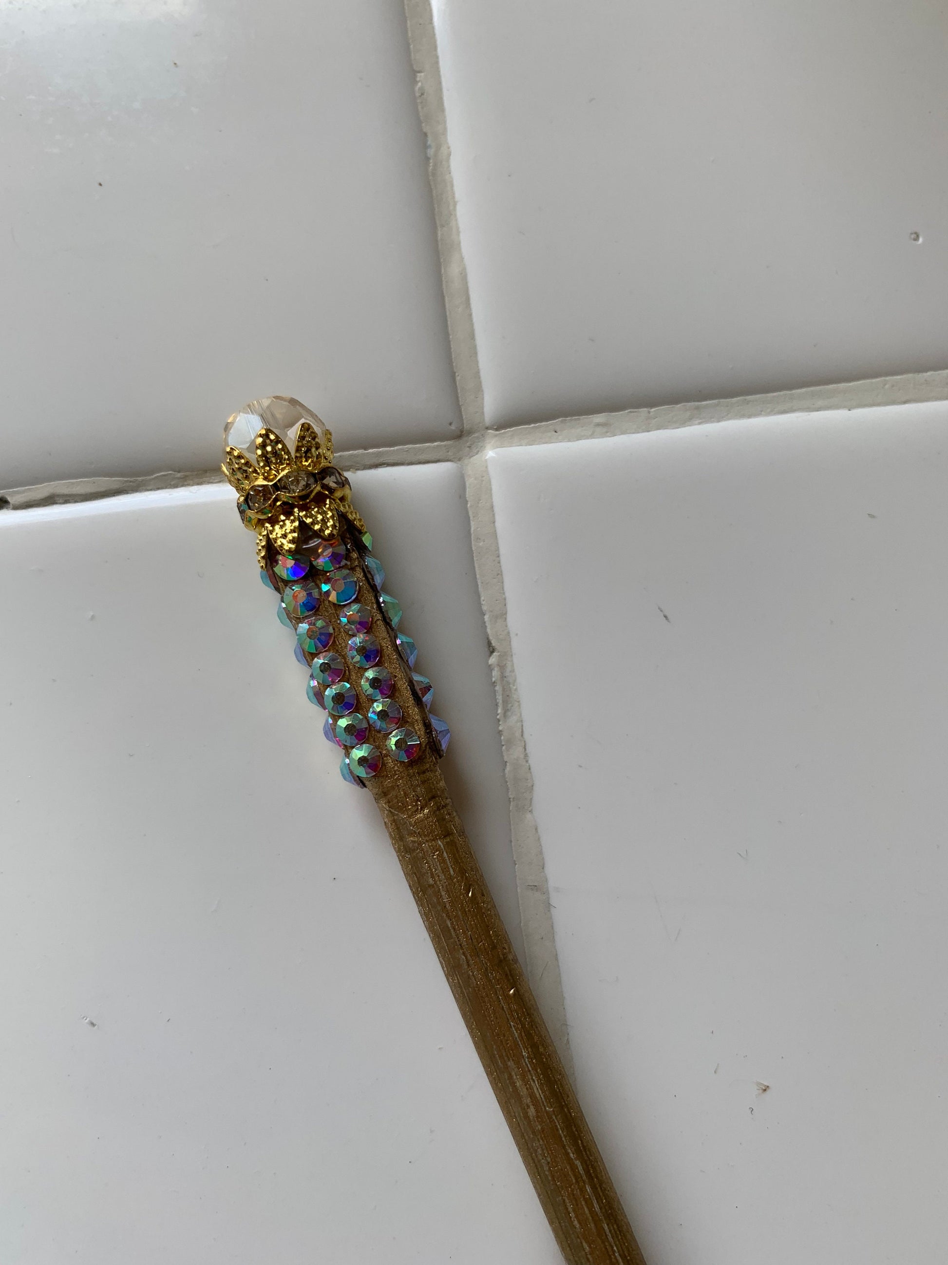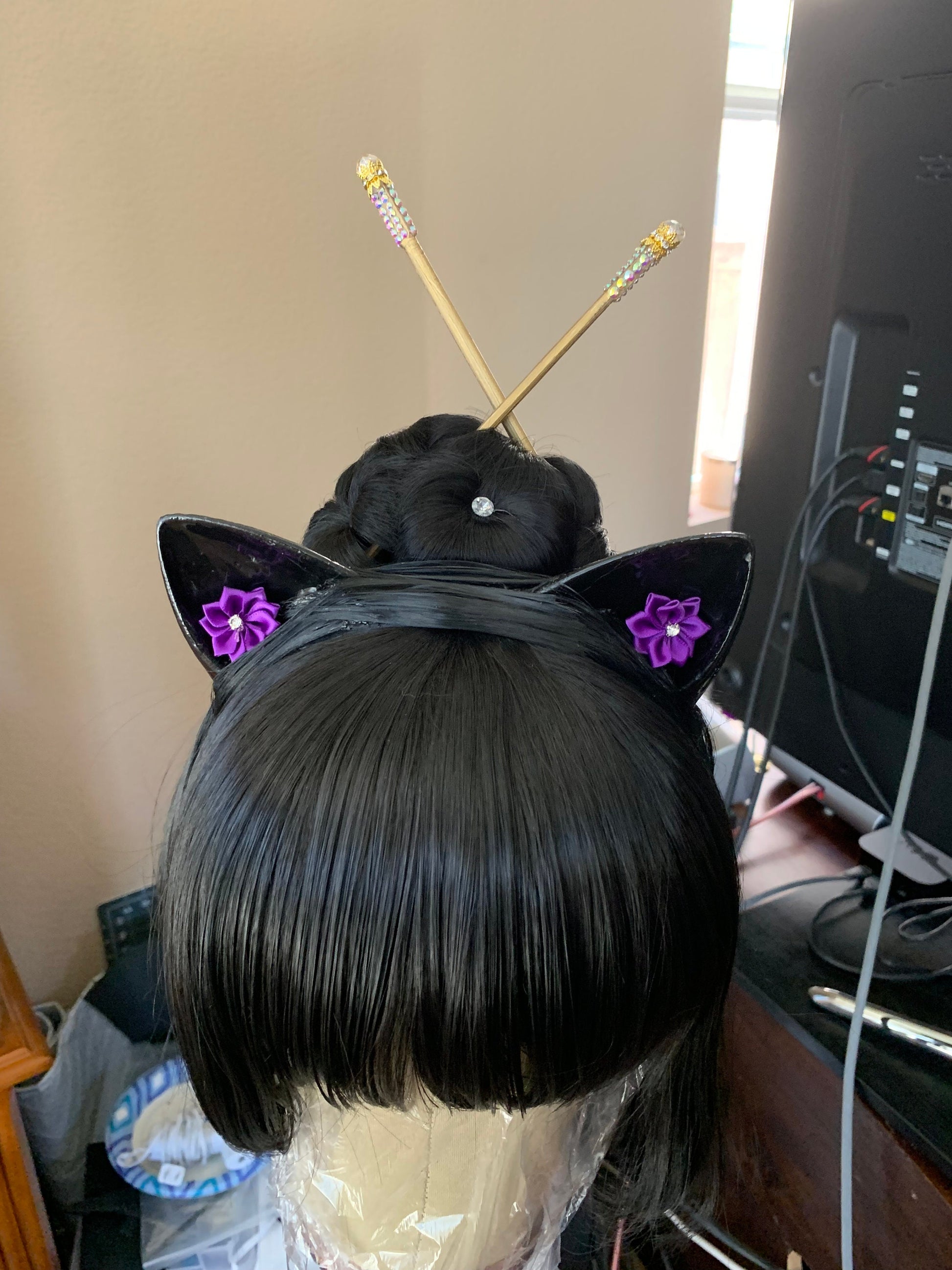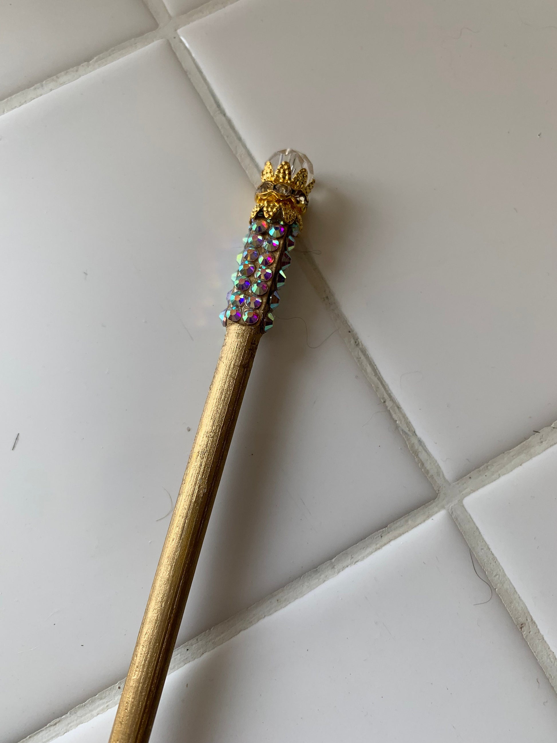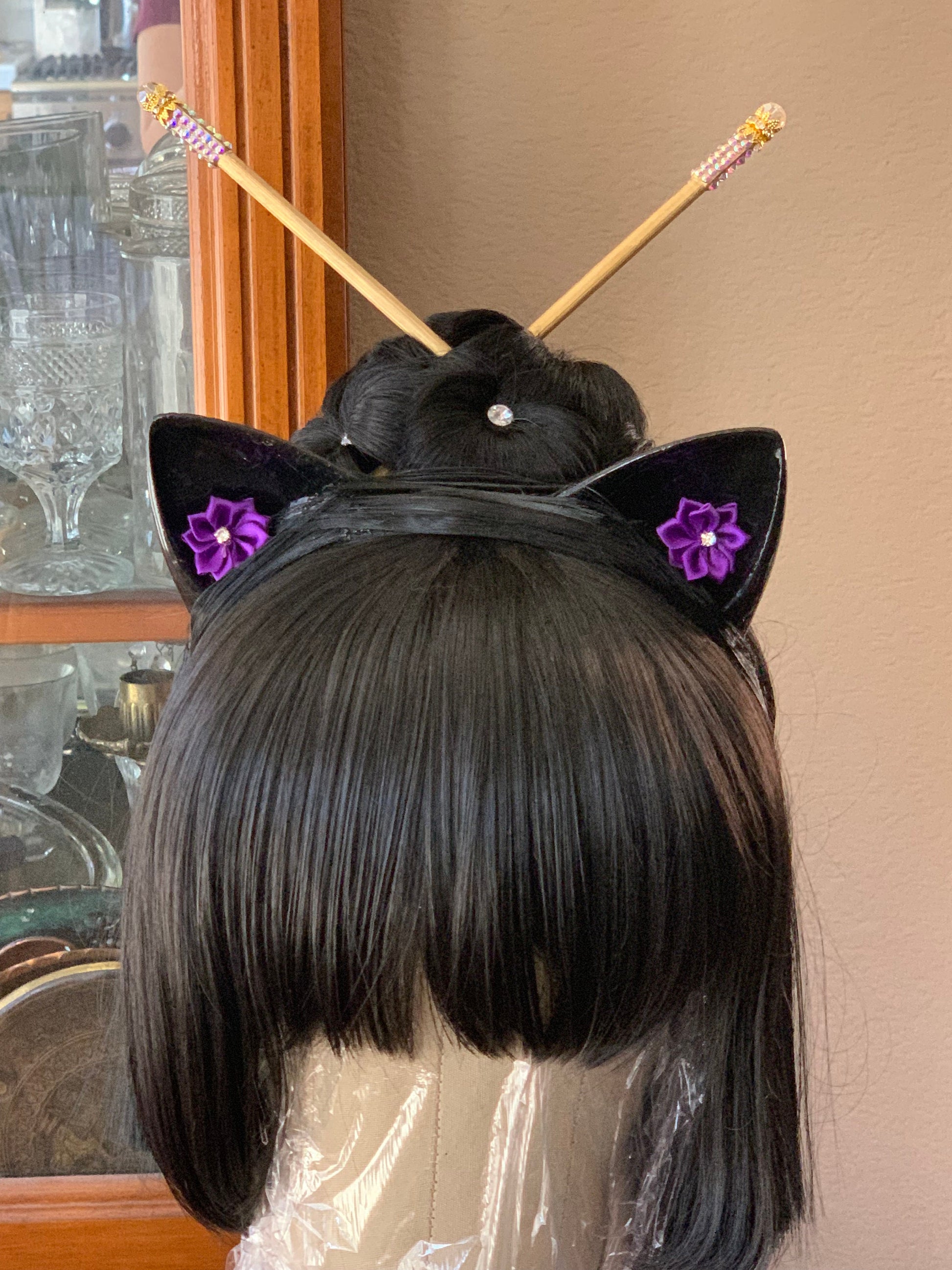 This is a pair of hair chopsticks. These hair accessories can be worn in a variety of oils. With a bun. With any up to. Adds a beautiful touch to your hairstyle. Approximately 9 1/2 inches long.