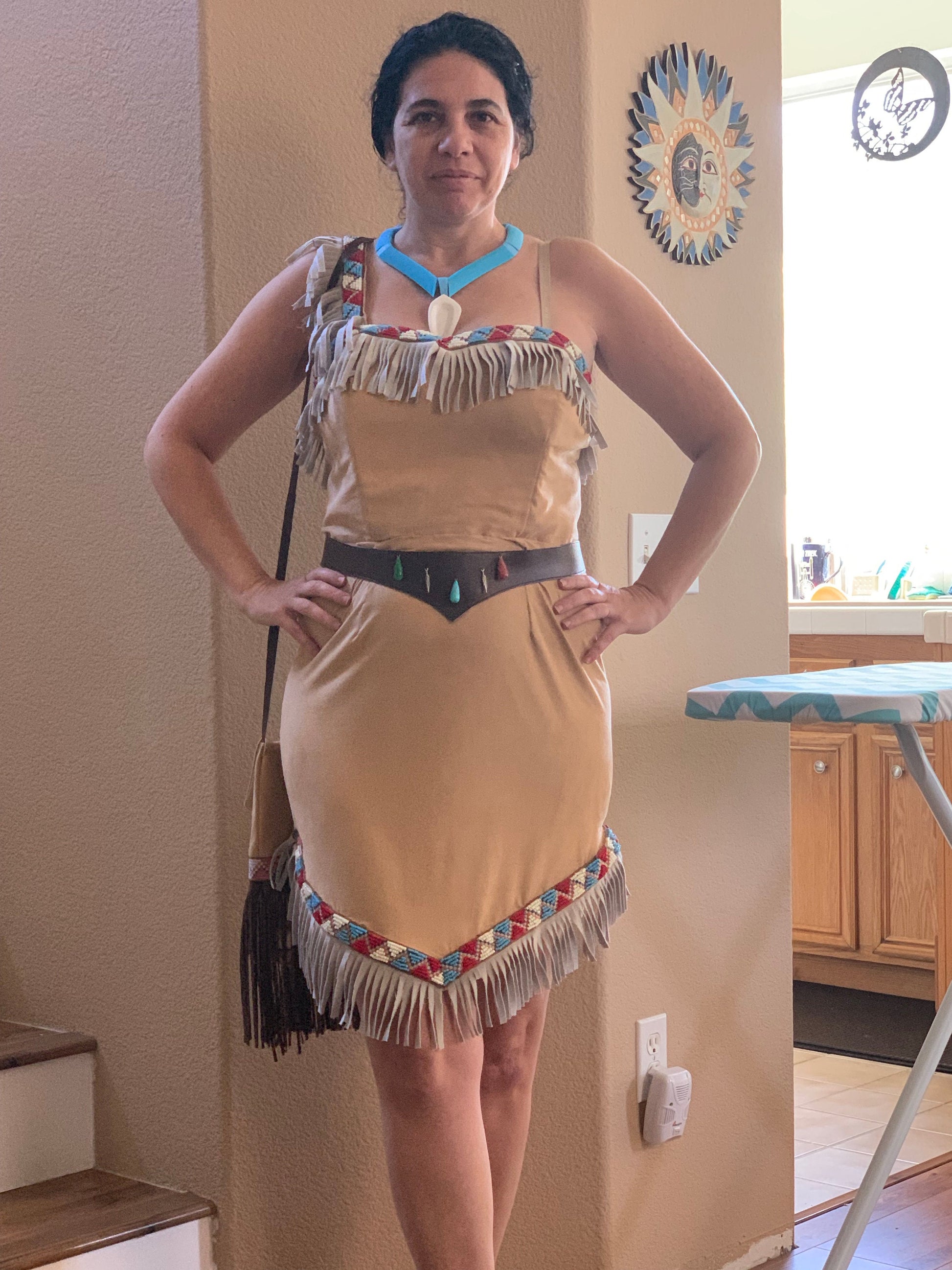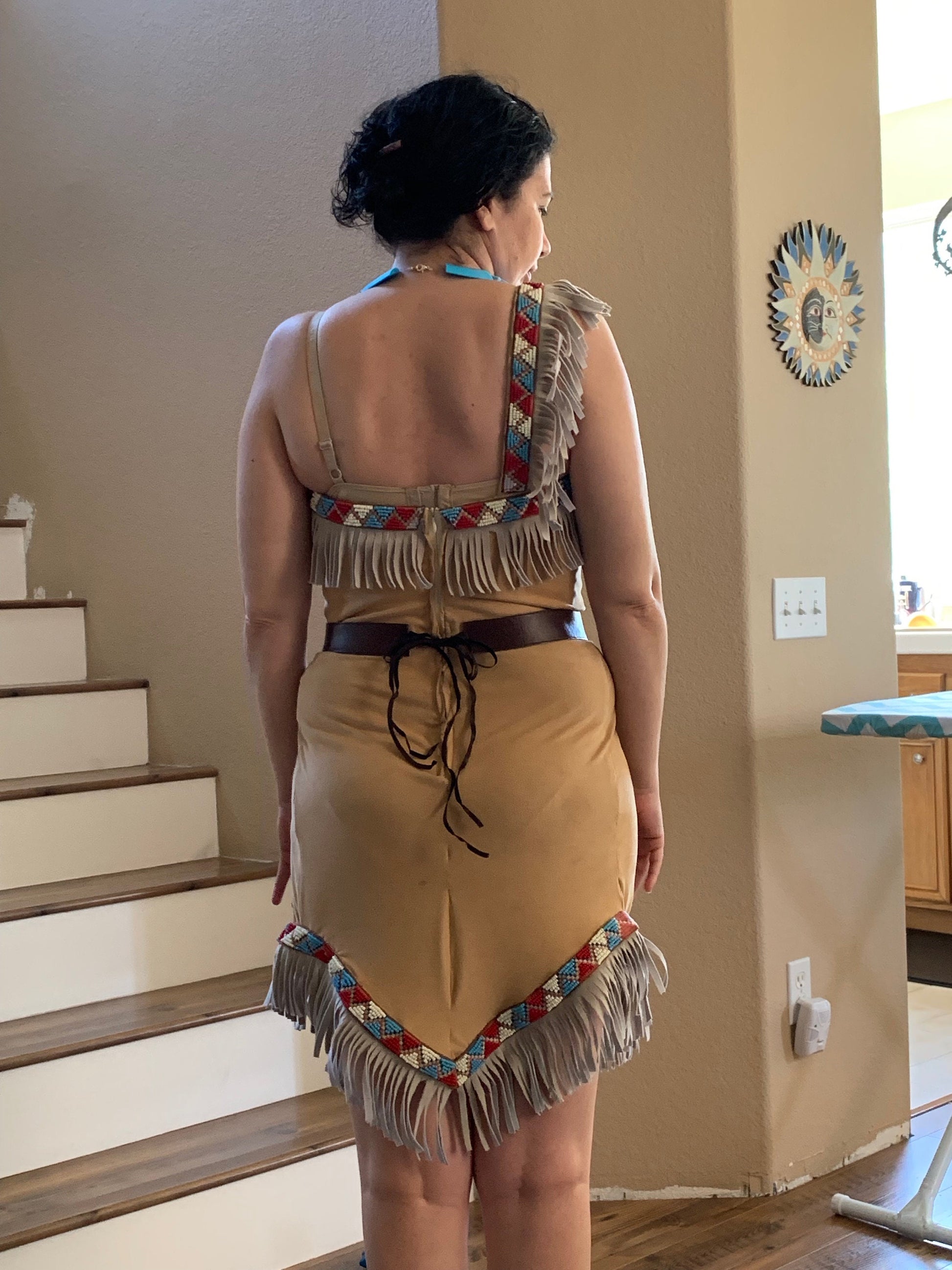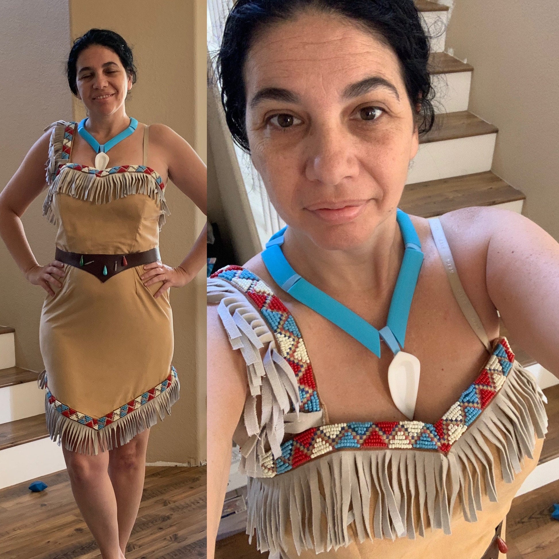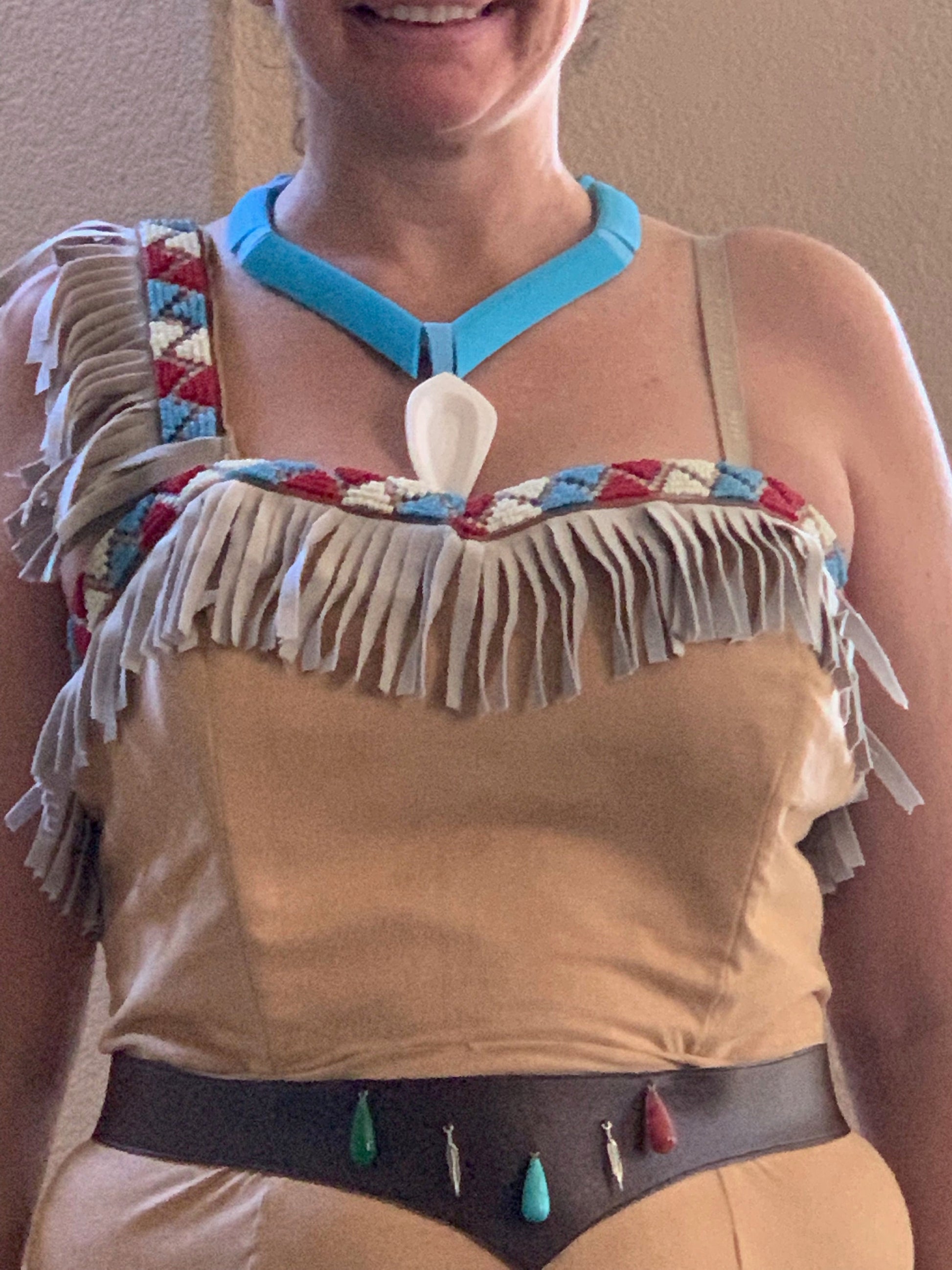Disney's Pocahontas Women's Costume Hand beaded trim and belt, with 3D printed necklace.