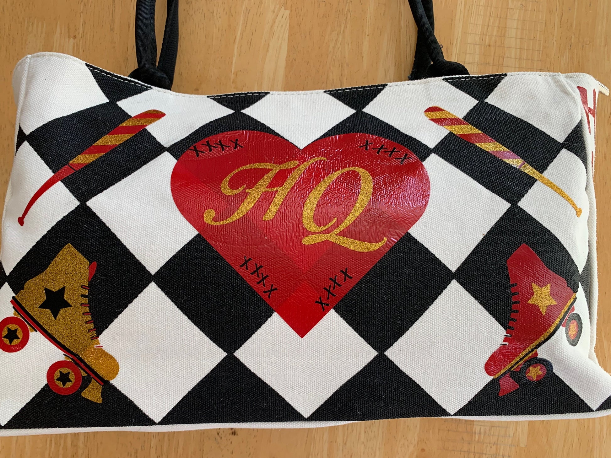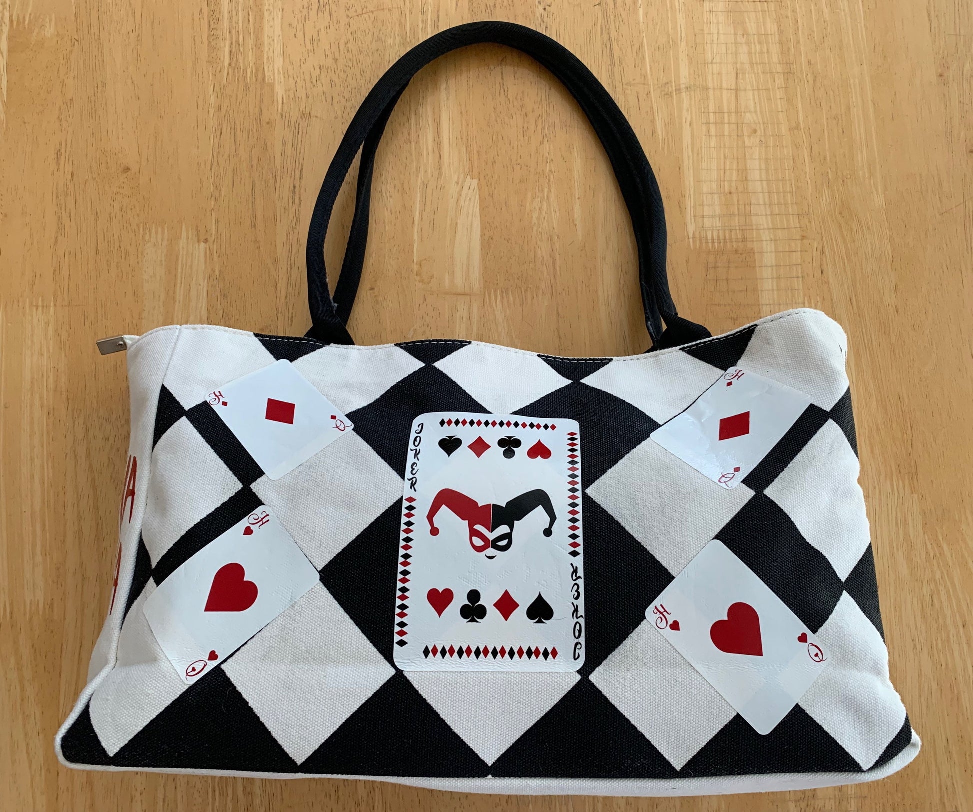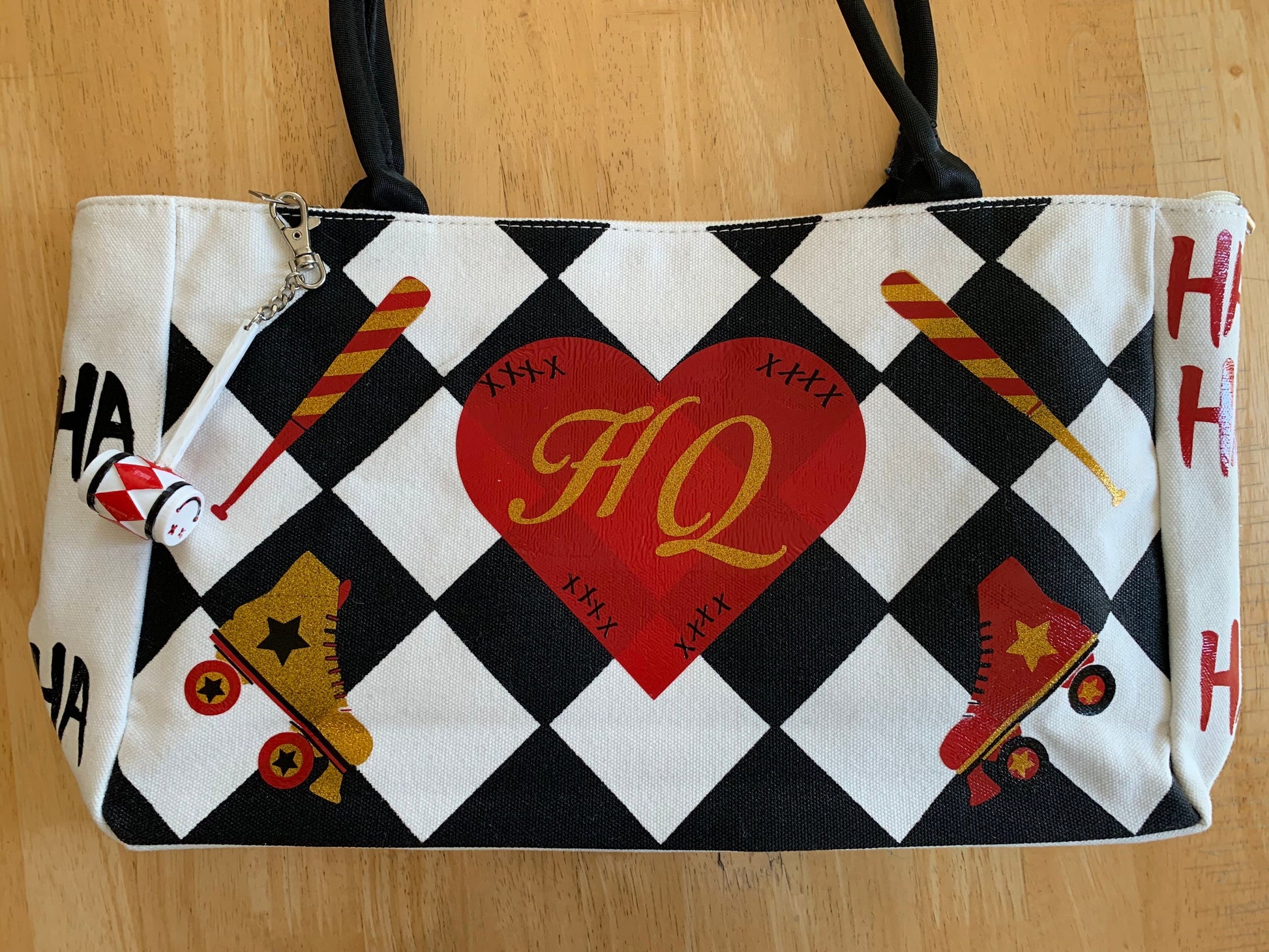 Harley Quinn inspired Purse/ Messenger Bag. Zipper inside. Canvas bag. With hammer keychain.