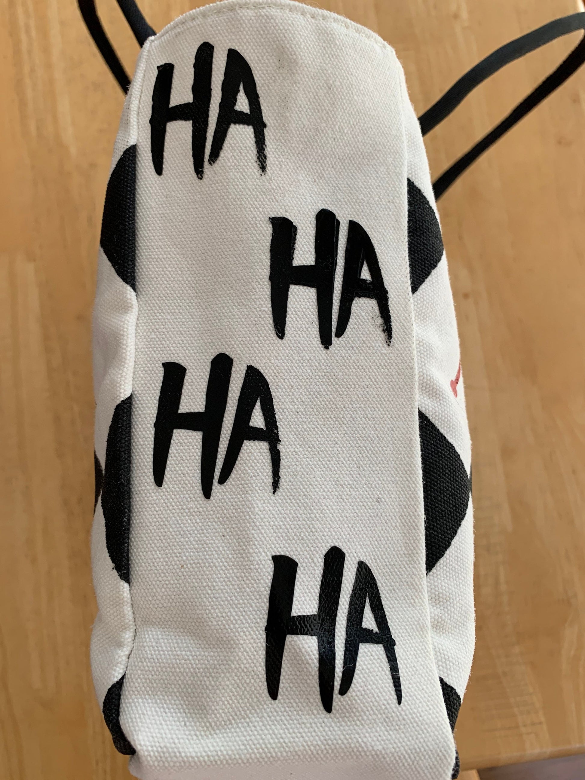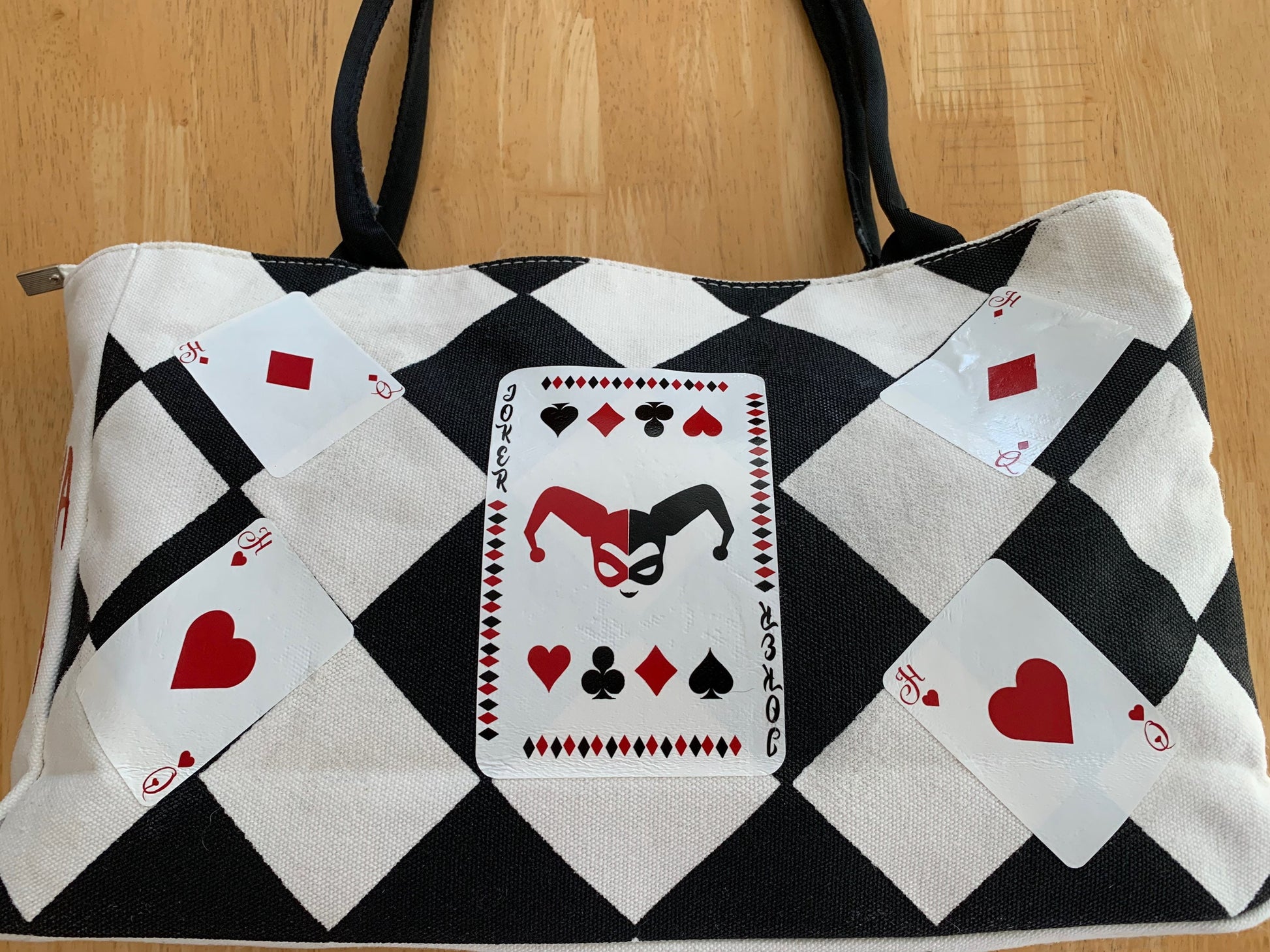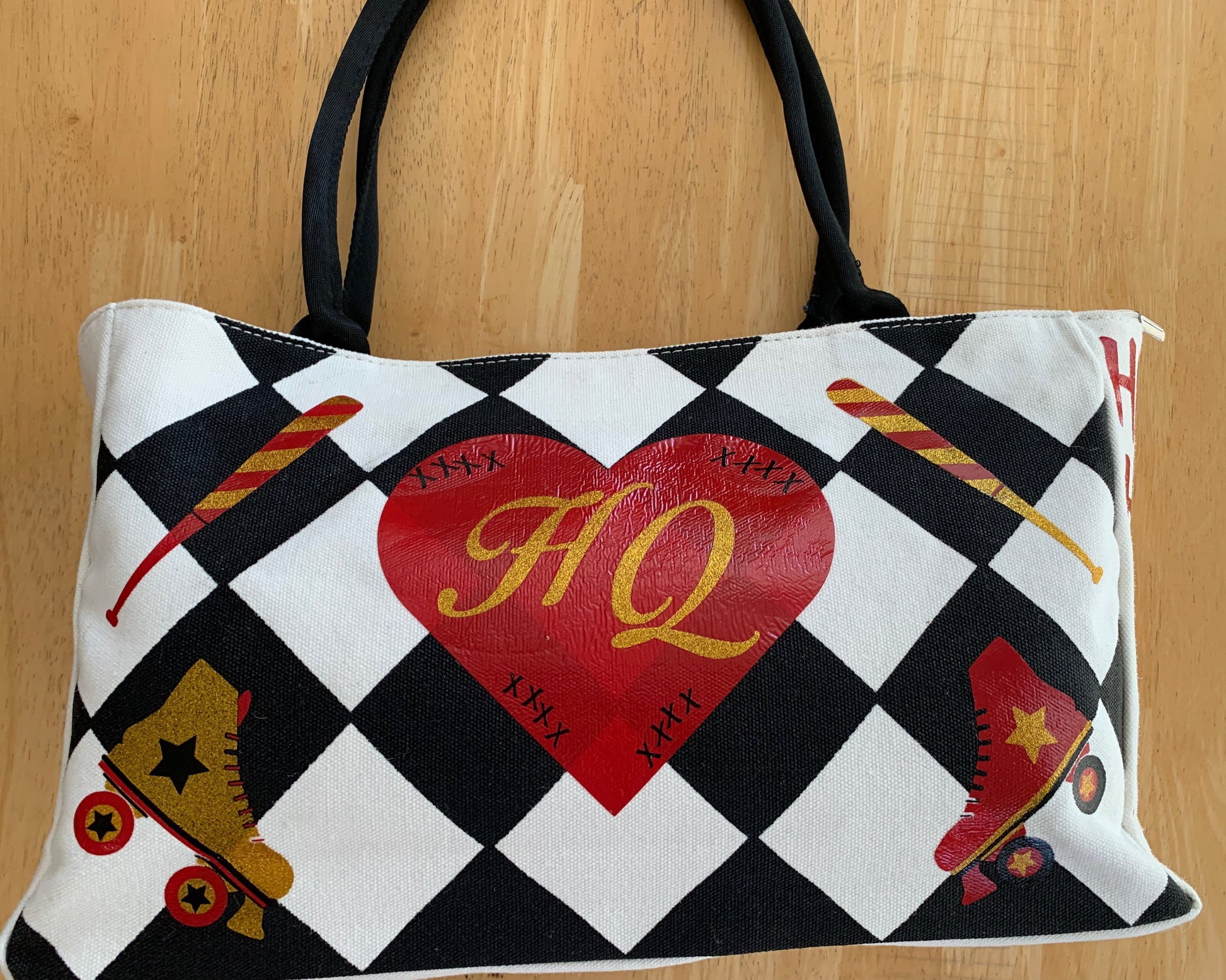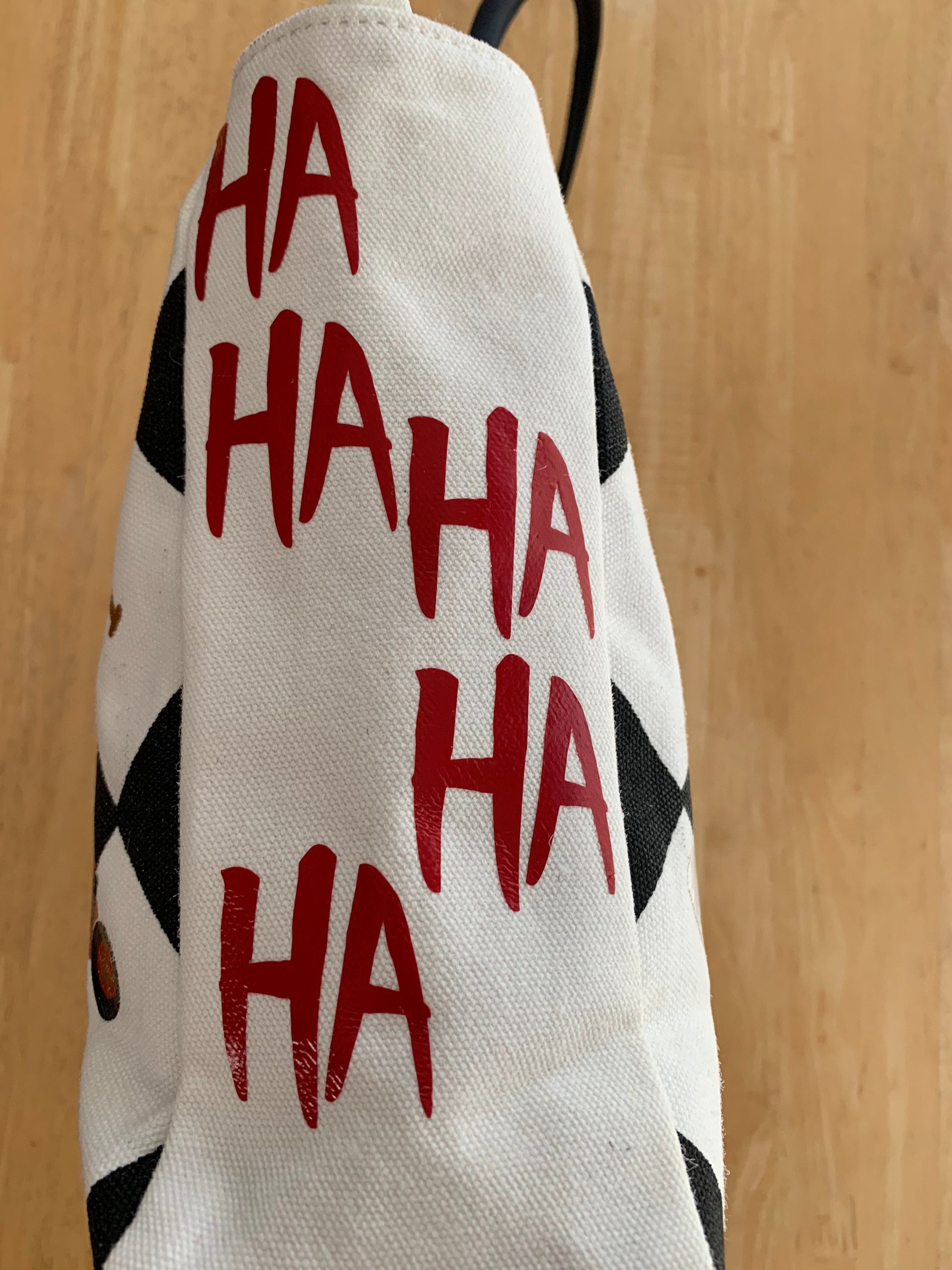 Harley Quinn inspired Purse/ Messenger Bag. Zipper inside. Canvas bag. With hammer keychain.