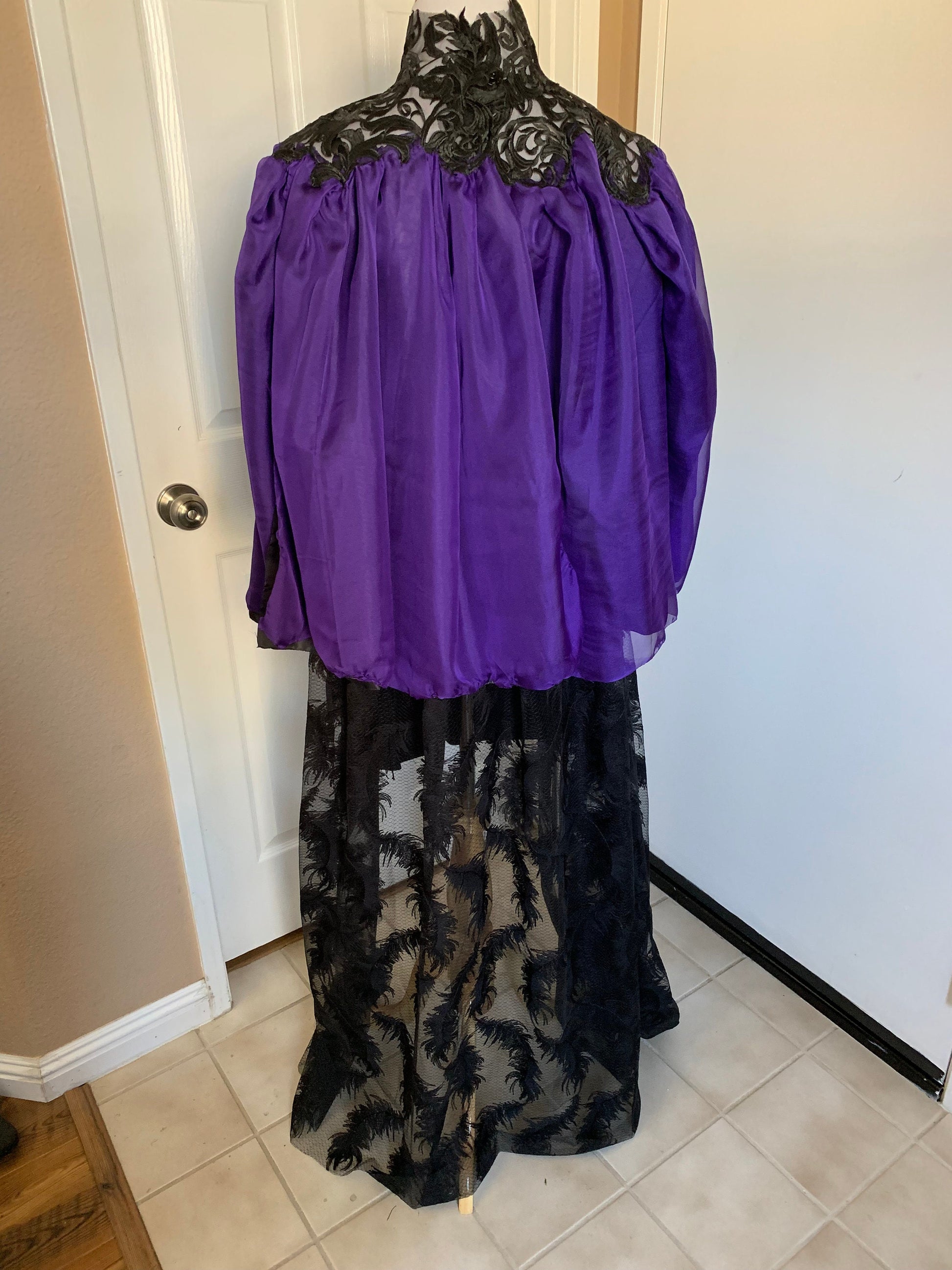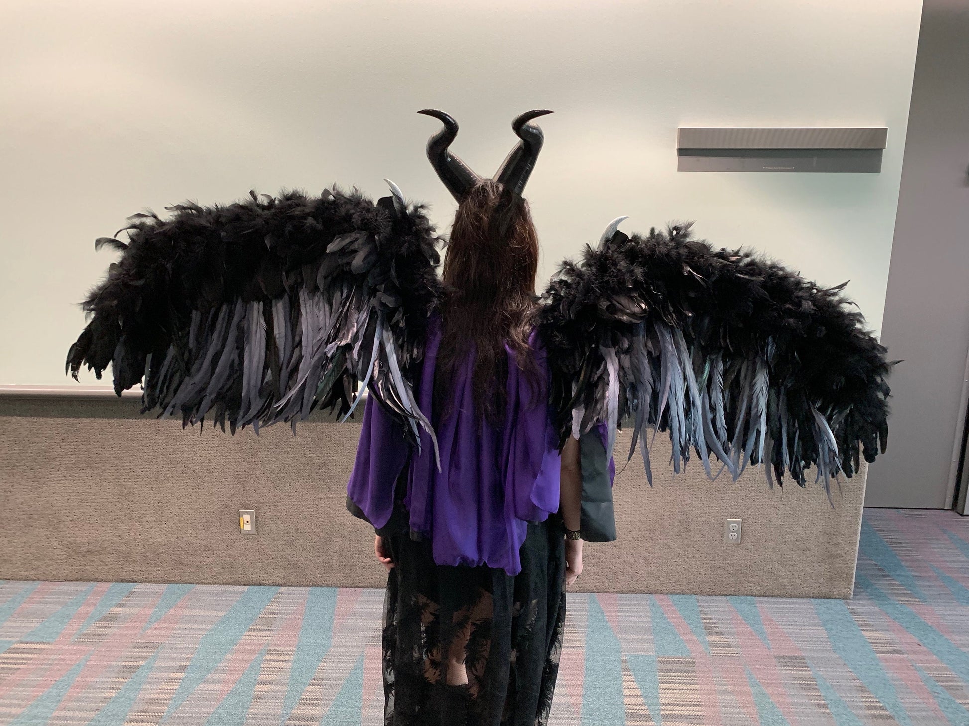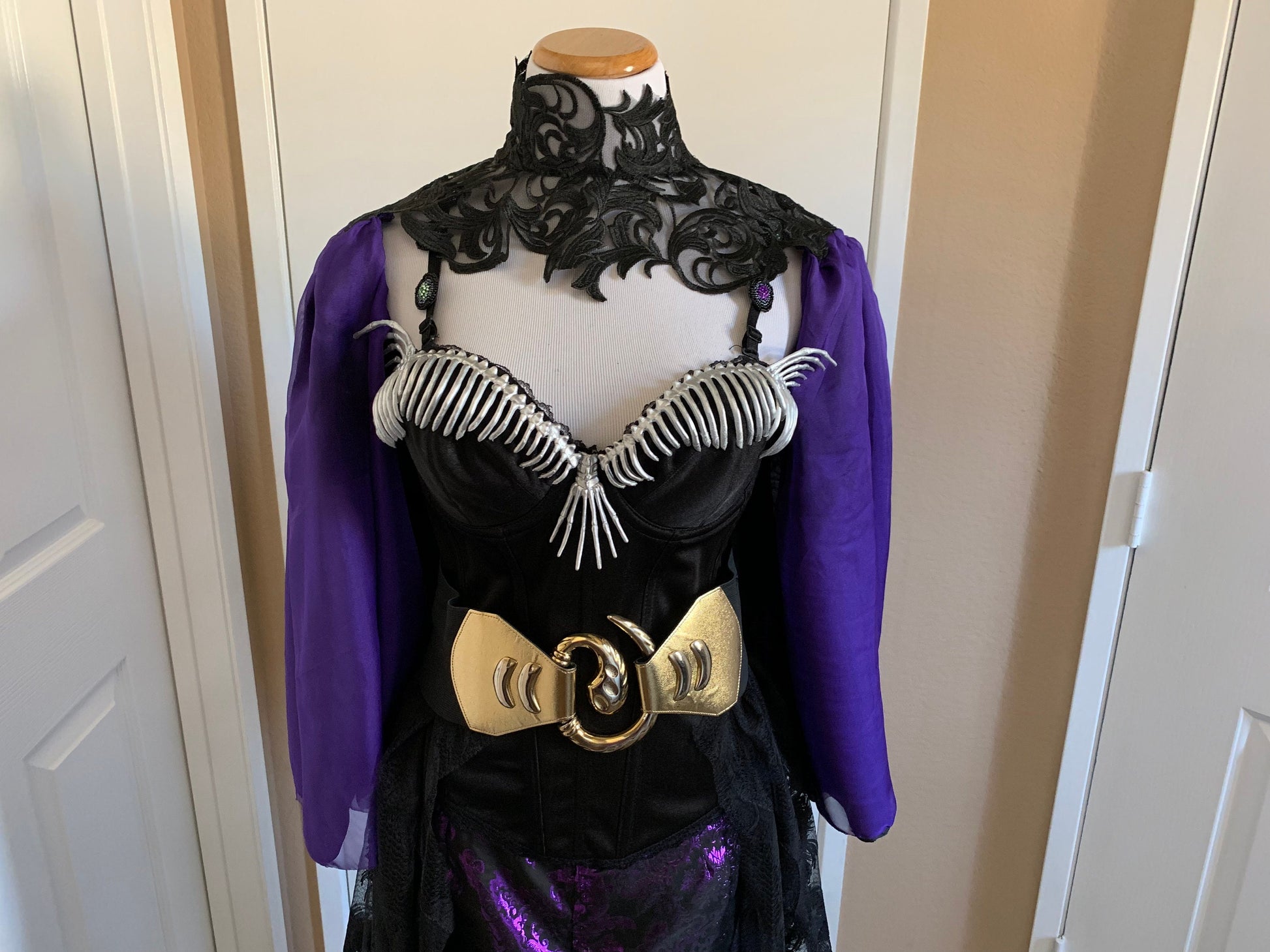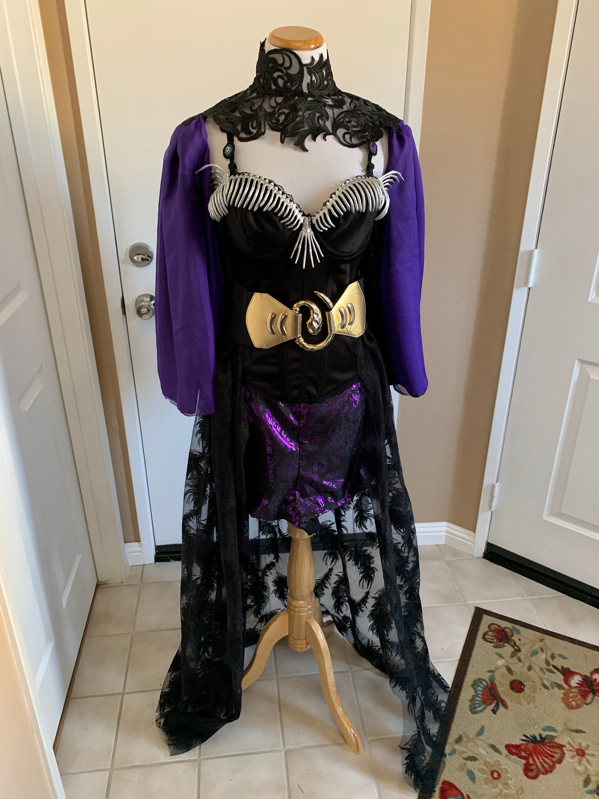 This version of Disneys Maleficent. Included is a the shorts, over skirt with attached belt, top, cape and horns. sexy fun costume, easy to wear. Size medium size 8. The wings are not included!