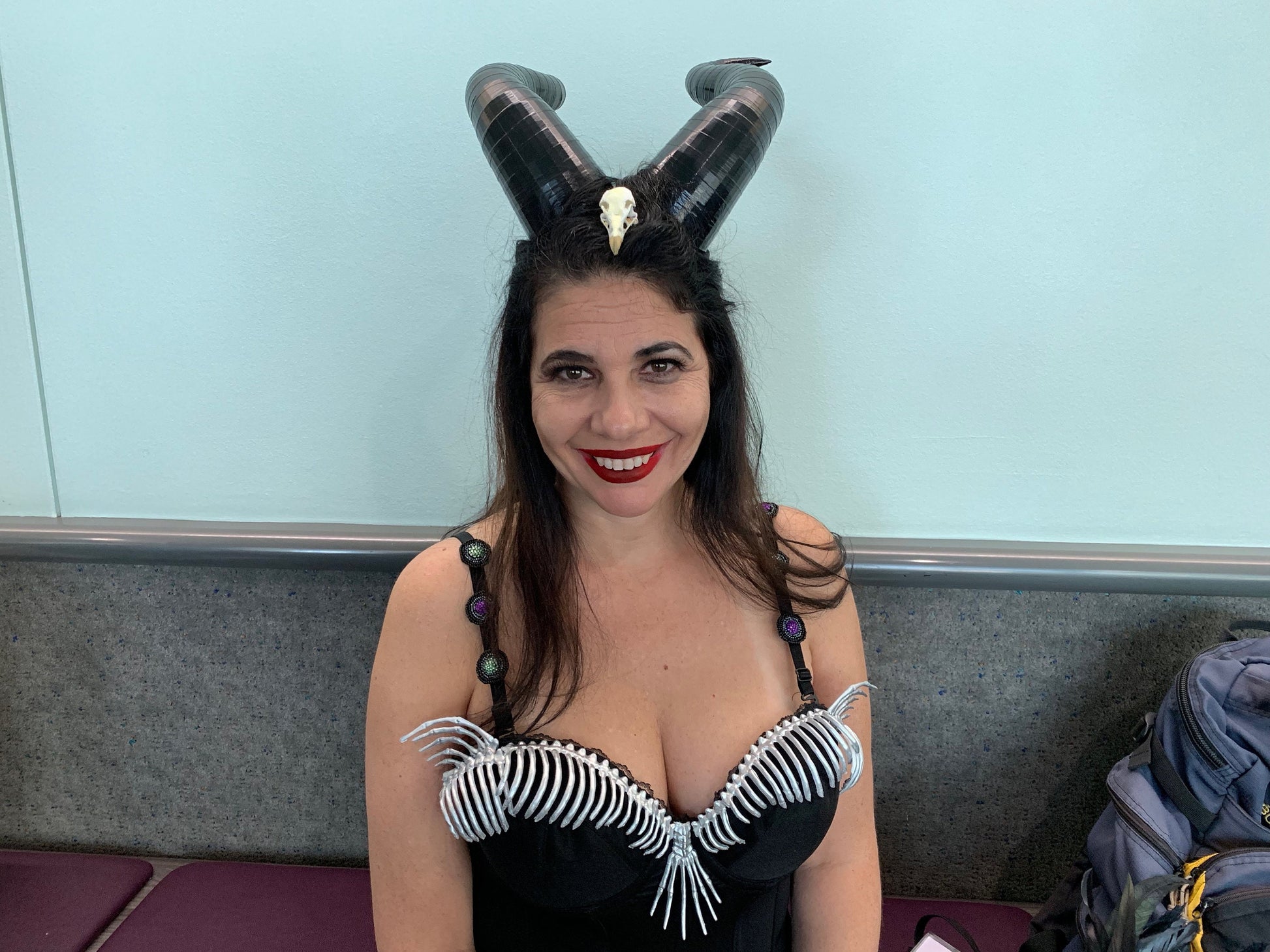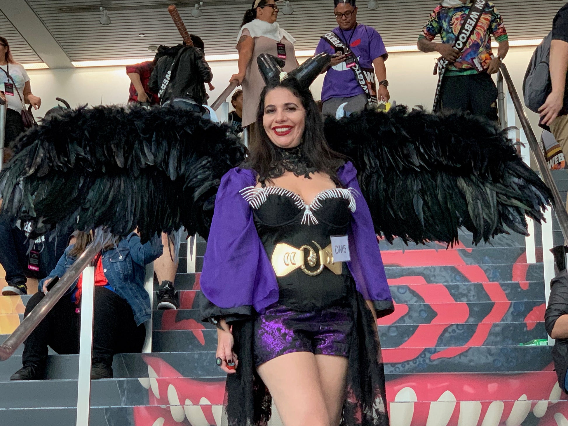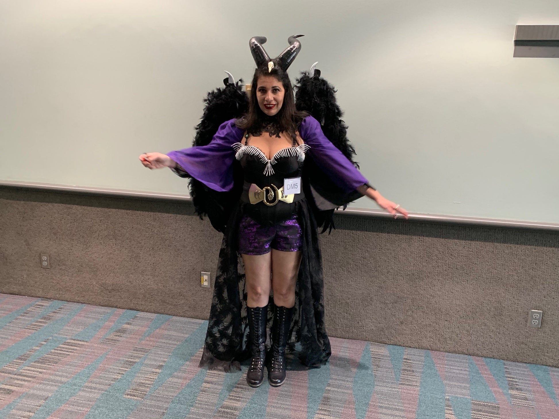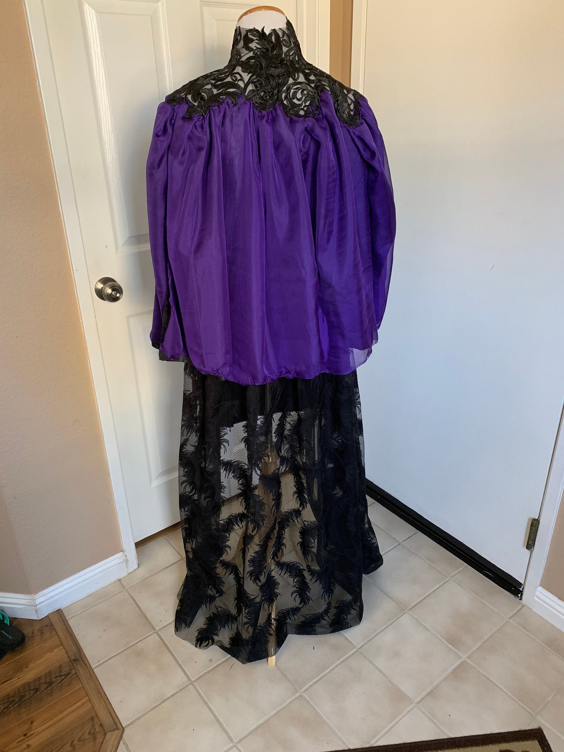 This version of Disneys Maleficent. Included is a the shorts, over skirt with attached belt, top, cape and horns. sexy fun costume, easy to wear. Size medium size 8. The wings are not included!