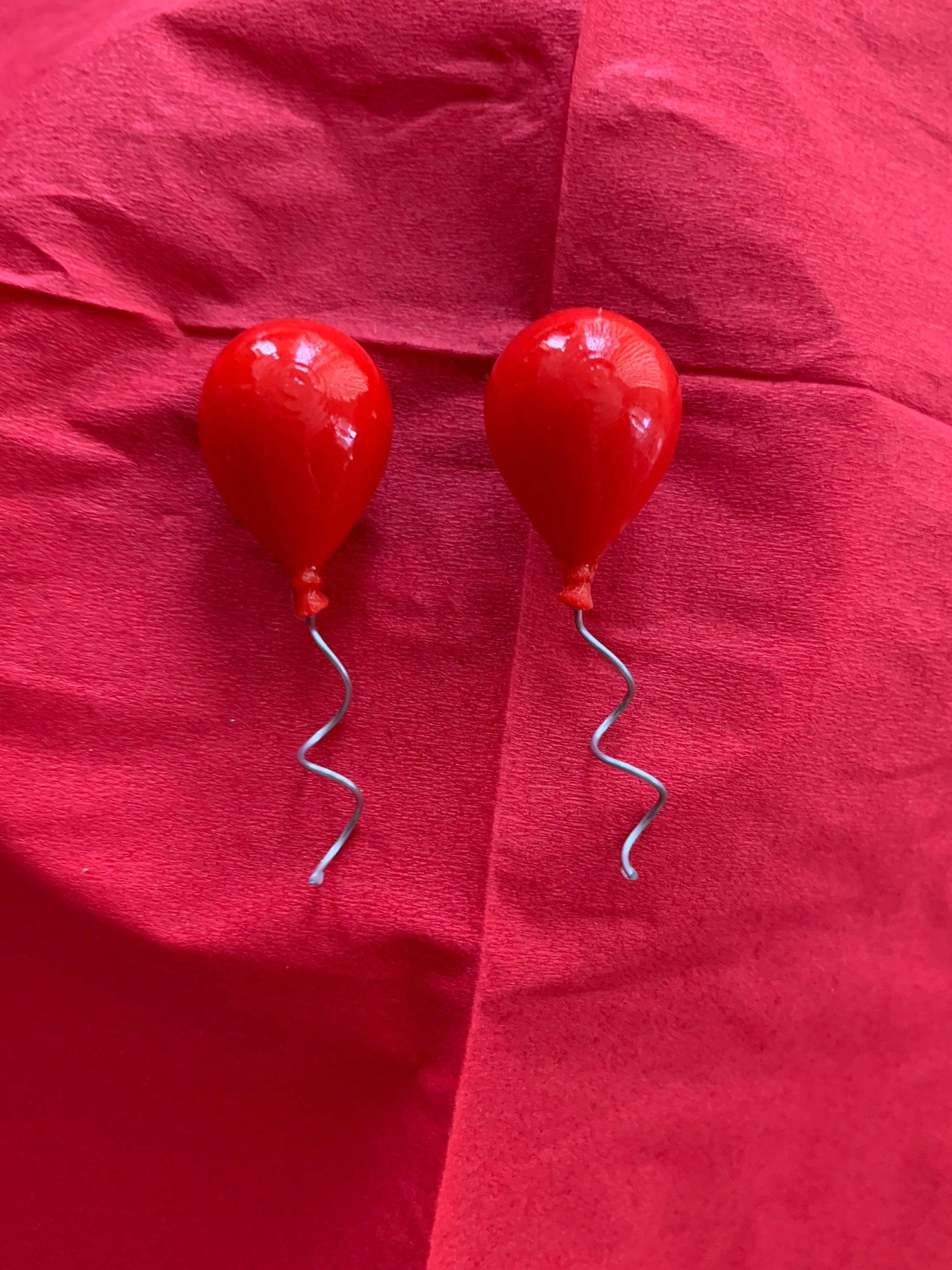 Red Ballon earrings! Pennywise inspired earrings. Inspired by IT. 3D printed earrings with a resin overlay, with a gloss finish. With wire to repaint the string. Customs Avalible: Request different color ballon’s .